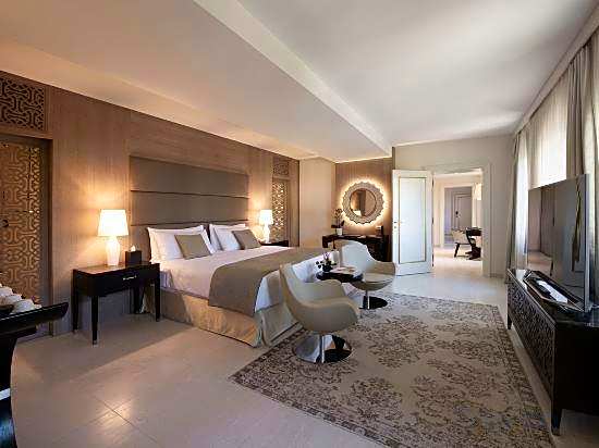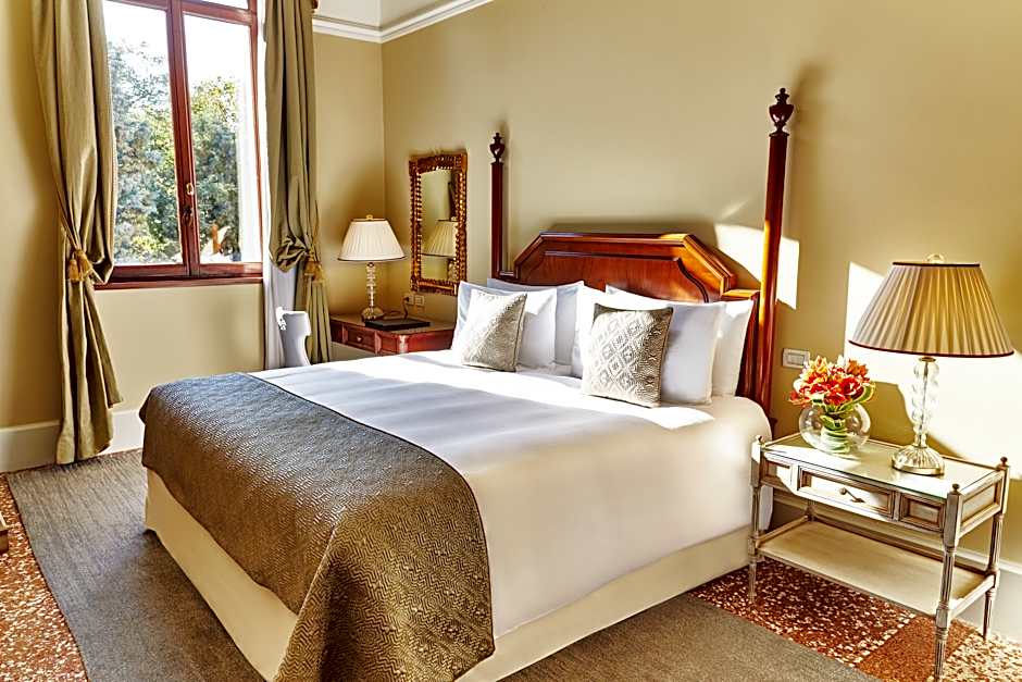 This large, elegant room features Terrazzo floors, views of the garden and both paint and silk-covered walls. There is a seating area, LCD flat-screen TV and a desk. The private bathroom is entirely made of Italian marble, and two sinks are available in some rooms. Room rates include a box of chocolates and a set of free drinks in the mini-bar.